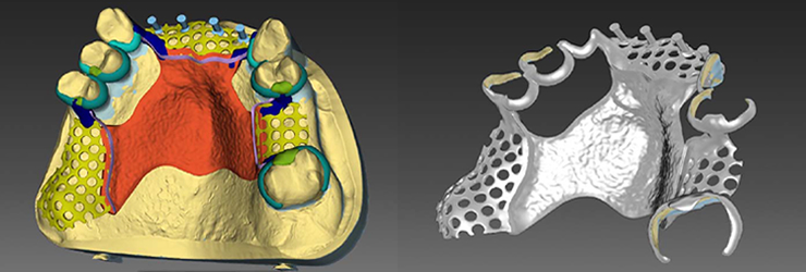 Ihr Abdruck wird mit unserem Scanner digitalisiert und die zukünftige Modellgussprothese am Rechner erstellt. Der Datensatz kann dann in 2 verschiedenen Wegen weiterverarbeitet werden. Zum einen können die Daten mittels eines 3D Druckers geprintet und anschließend gegossen werden, oder es wird im Lasermelting Verfahren die Modellgussprothese erstellt. Beide Verfahren können wir mit unseren Partnern anwenden. Ebenso ist es möglich eine komplett metallfreie Lösung Ihnen anzubieten.